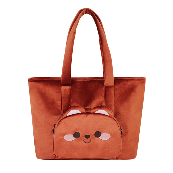 定制羊蓋絨手拎包搖粒絨熊貓可愛充棉手提包單肩包毛絨公仔包