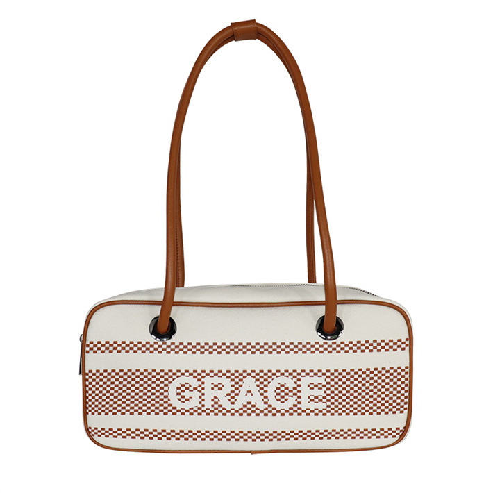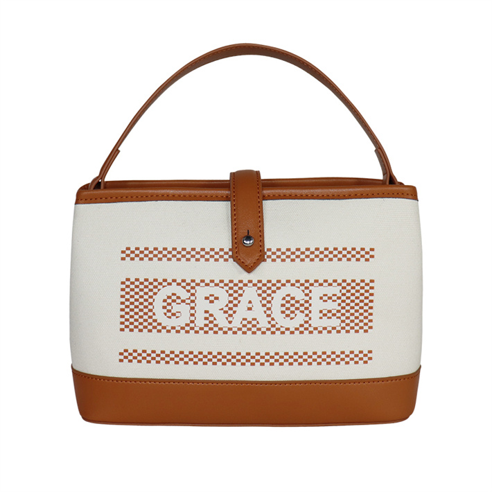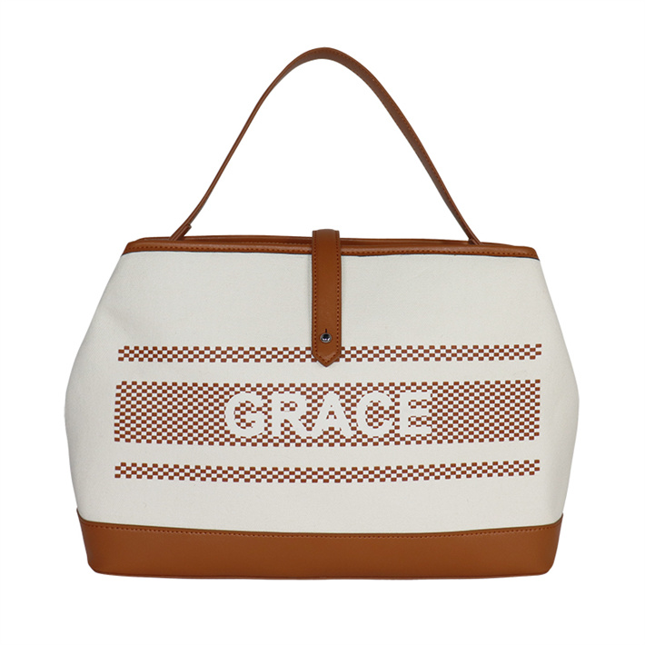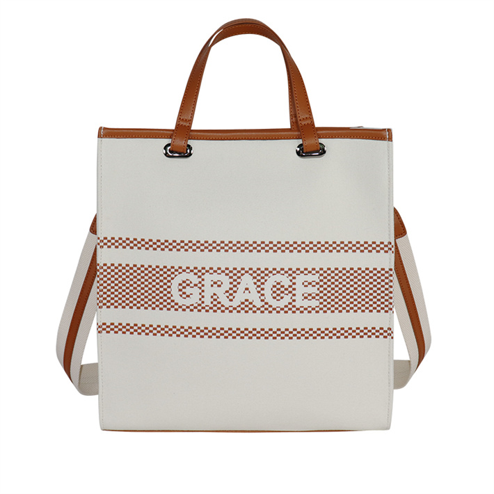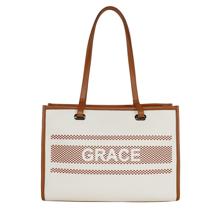 立體膠印帆布包 大容量手提包 凹凸棋盤格質(zhì)感老花單肩托特包