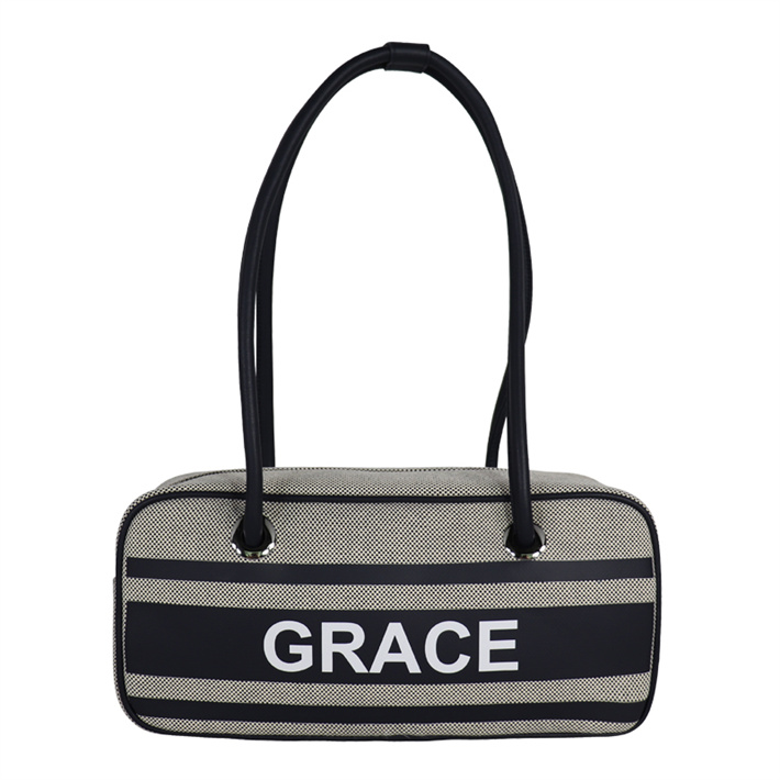 定制大牌膠印帆布包 字母水桶包 凹凸棋盤格質(zhì)感小眾單肩女包