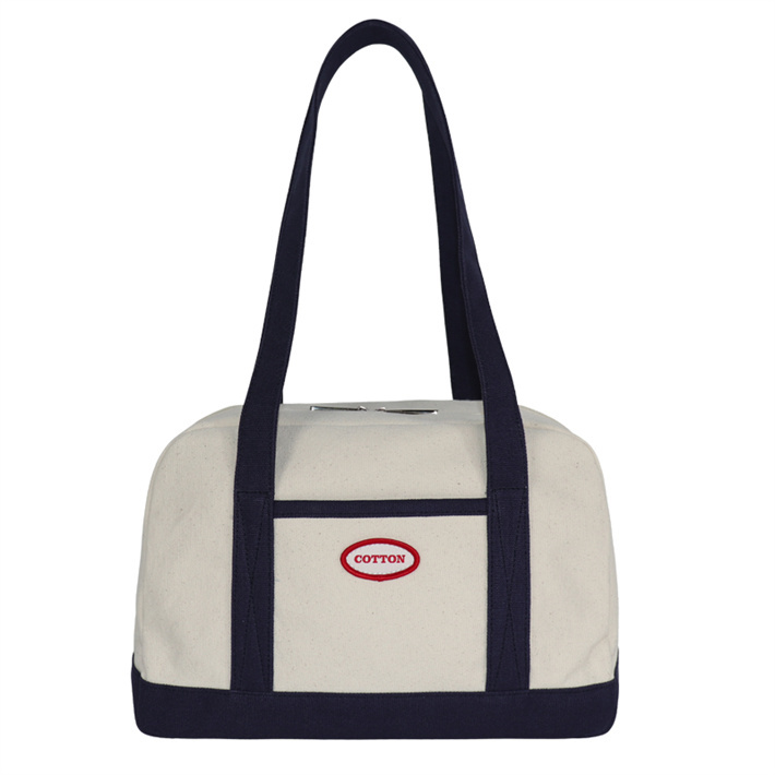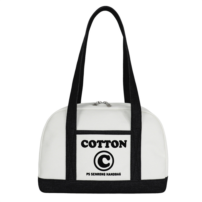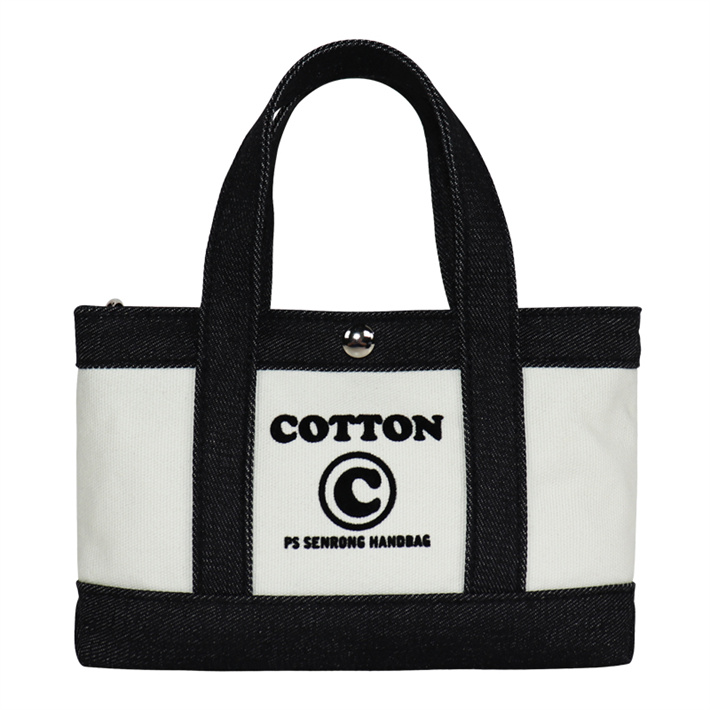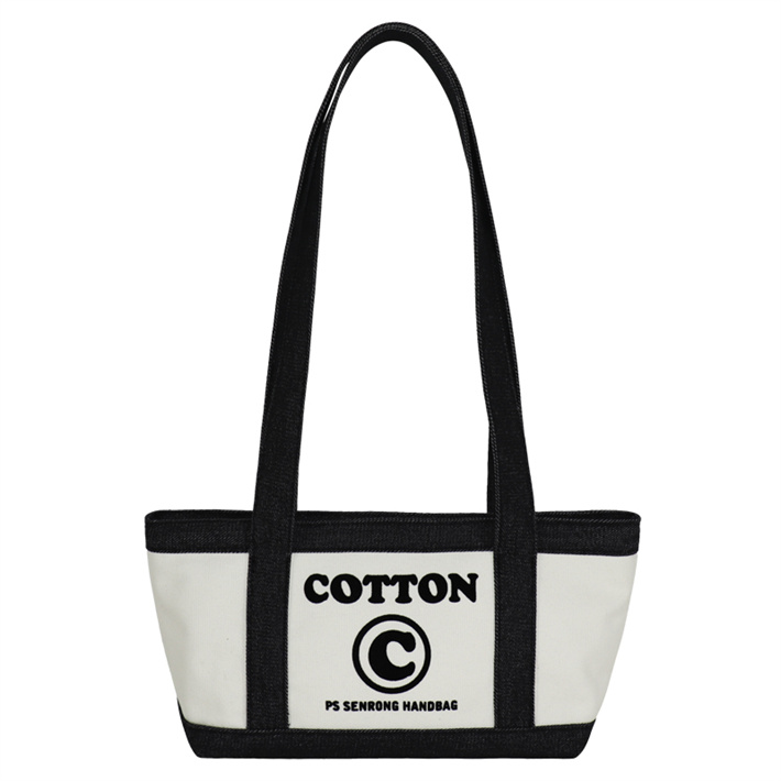 日系簡(jiǎn)約帆布包定制 帆植絨拼接單肩手提包寵物隱蔽包牛仔購(gòu)物袋
