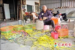 林金山說,編織手工藝是早年農(nóng)村婦女必備才藝,甚至是女孩子能否嫁得如意郎君重要條件。小時(shí)候在耳儒目染下學(xué)會(huì),除編繩籃外,他還會(huì)替兒孫們編織便當(dāng)套、枕頭套等,讓孩子們感受老阿公貼心的關(guān)懷。
