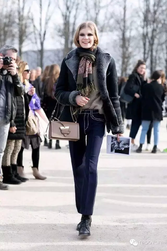從街拍中不難發(fā)現(xiàn),藍色款、黑色和駝色款是最受歡迎的。也是很好搭配衣服的。有個性的姑娘可以試試大紅色,喜歡穿深色復(fù)古風(fēng)格衣服的姑娘們則可以挑戰(zhàn)一下拼色鑲邊的土黃色麂皮款。